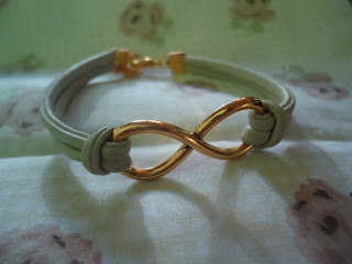 Pulseira em fio de couro sintético com símbolo do infinito dourada